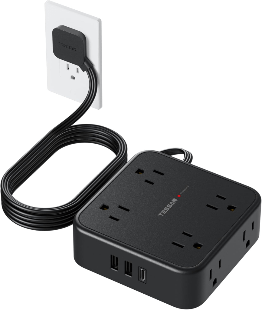 - 11 in 1 Power Strip with USB: TESSAN power strip has multi plug outlets; Extension cord with multiple outlets turns 1 socket into 8 outlets (1250W Max) and 3 USB ports, charges 11 devices simultaneously without blocking, fit for various indoor spaces